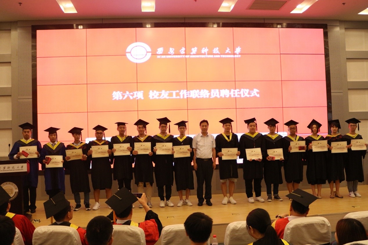 最后,学院党委书记马立建依次为任海涛、陈鹏昊等15名优秀毕业生颁发校友工作联络员聘书并合影留念。