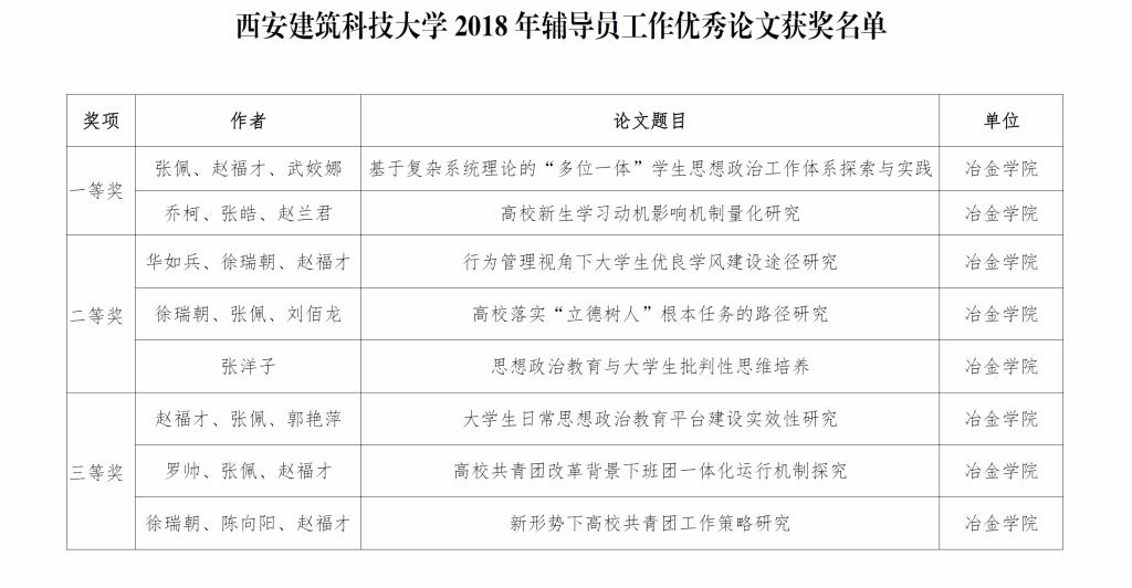辅导员获得优秀案例一等奖1篇、二等奖2篇、三等奖1篇;优秀论文一等奖2篇、二等奖3篇、三等奖3篇,获奖数量、奖项级别均位居学校前列,魔性论坛