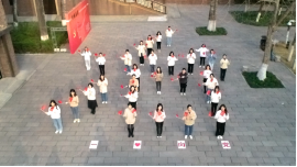 首先举行的是“我想对党说句话”主题创意拍活动,全院女教职工挥舞党旗国旗,整齐地排列成“冶”“金”两字,充分展现了冶金女教工团结奋进的精神风貌和“一心向党、我爱中国”的爱党爱国情怀。