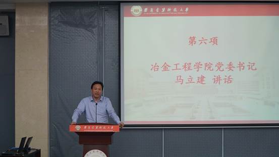 91级杰出校友曾建新为到场师生作了题为《选专业,还选冶金》的励志成才报告。他结合自身多年在国际市场打拼的经验,以开阔的视野和格局分析讲解了冶金行业未来发展前景,希望同学们能坚守自己所学专业,学到一身理工科专业的硬功夫。学长用诙谐幽默的语言,传达给大家许多值得深刻思考的道理,赢得现场观众的热烈掌声。