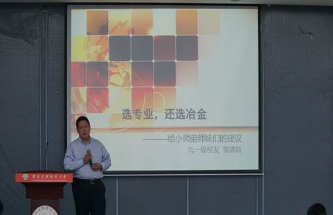随后,魔性论坛 91级杰出校友曾建新为到场师生作了题为《选专业,还选冶金》的励志成才报告。他结合自身多年在国际市场打拼的经验,以开阔的视野和格局分析讲解了冶金行业未来发展前景,希望同学们能坚守自己所学专业,学到一身理工科专业的硬功夫。学长用诙谐幽默的语言,传达给大家许多值得深刻思考的道理,赢得现场观众的热烈掌声。