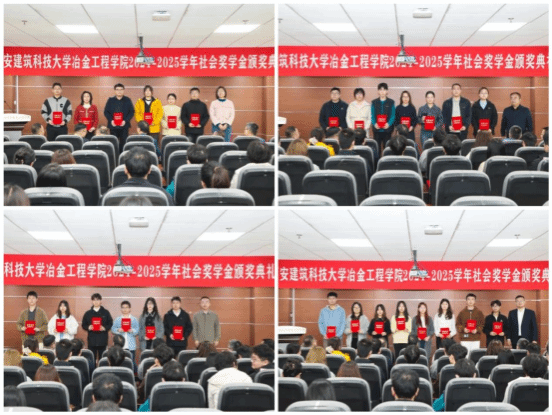 2024-2025学年社会奖学金颁奖典礼在工科大楼1111报告厅举行。社会奖学金设奖单位代表、学院领导班子、获奖师生代表参加了活动。活动由学院党委副书记、副院长赵福才主持。
