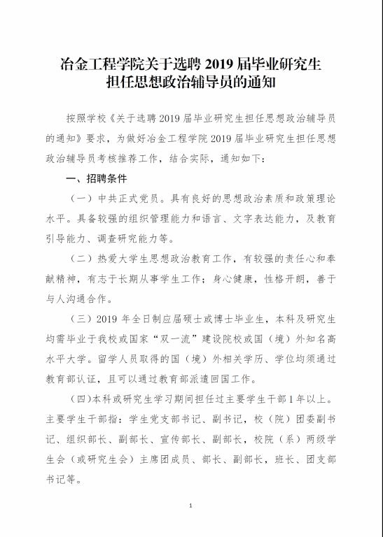 魔性论坛 关于选聘2019届毕业研究生担任辅导员的通知