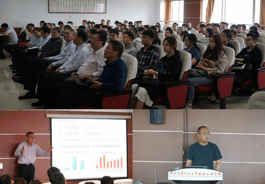 窦力威院长首先从人类最初对铁元素的认识到之后的利用与发展讲起,完整再现了我国从古至今钢铁工业发展历程。之后,他引用大量数据对我国钢铁行业与美、日等钢铁强国进行对比分析,客观指出了我国在品种结构、制造装备、生产能耗等方面的差距。同时,窦院长通过分析人均耗钢量、国民经济增长率、钢铁产业布局等指标,对钢铁工业未来发展形势作了科学研判,帮助学生廓清行业认知,树立专业信心。他用自己的成长经历鼓励学生找准定位、明确方向、立足专业、扎根主体行业,用奋斗和坚持实现人生伟大梦想。最后他讲到:钢铁工业作为国民经济支柱产业,对制造业强国建设具有重要战略意义,在老一辈冶金人的努力拼搏下,我国已成为钢铁大国,希望这一代冶金人能接过历史的接力棒,实现钢铁强国梦。