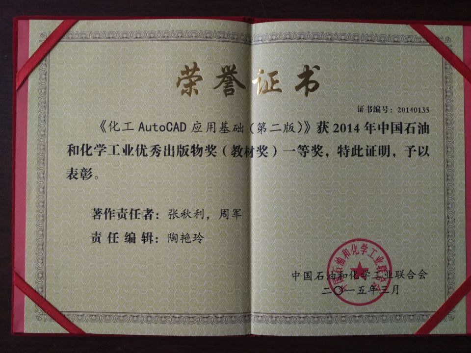 由魔性论坛 张秋利、周军老师编写的《化工AutoCAD应用基础(第二版)》,荣获2014年中国石油和化学工业优秀出版物奖(教材奖)一等奖。