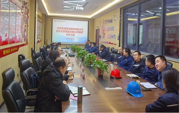 副院长杨西荣,教学质量监控与评估中心专职副主任、环境工程专业负责人韩芸教授带领联合毕业设计团队赴陕钢集团汉中钢铁有限责任公司走访交流。公司总工程师尚巍巍,行政人事部、生产技术部、安全环保部、炼钢厂、轧钢厂、中厚板厂等部门负责人参与座谈交流。