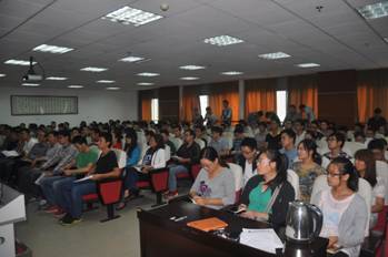 师生作报告,在报告结束后,马老师还与参加报告的老师和同学们就相关课题做了深入交流。