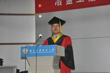 院长王快社代表学院向2014届研究生表示热烈的祝贺,向为本届毕业生的成长付出辛勤汗水的导师们表示衷心的感谢,惜别之际,王院长向毕业生提出了殷切希望,并嘱咐大家能够脚踏实地把工作做好,成就一番事业。2014届毕业生孙美娜同学作为学生代表发言,在感谢母校和导师辛勤培育的同时,也积极表态在未来的工作岗位上,要将冶金人踏实肯干、持之以恒的精神发扬下去。