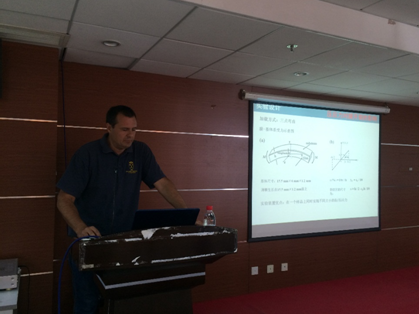 最后,Alex A. Volinsky教授介绍了一个关于计算机硬盘润滑油蒸发速率测量方法的研究成果,勾起了在场老师和同学们的兴趣。他指出,蒸发量很大程度上取决于边界条件,实验结果显示出良好的协议与理论分析,更快的加热速率能够得到持续可重复的数据,采用相同的测试(边界)条件可以进行重复测试。
