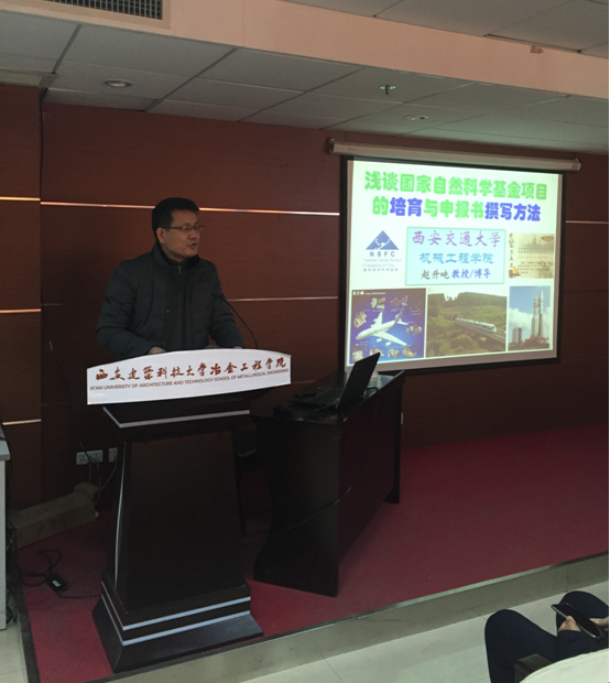 院长王快社教授主持,讲述当前形势下国基金申报的重要性并介绍赵升吨教授的基本情况。