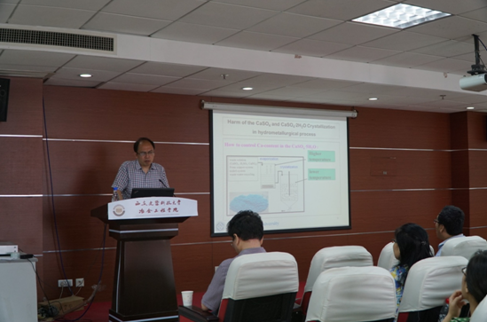 学生主讲关于《重金属湿法冶金过程中硫酸钙的结晶行为》的报告会。曾德文教授作为中南大学博士生导师,曾经在德国佛赖贝格工业大学无机化学研究所学习和工作,完成了德国国家科学基金(DFG)等多项课题,获理学博士学位。