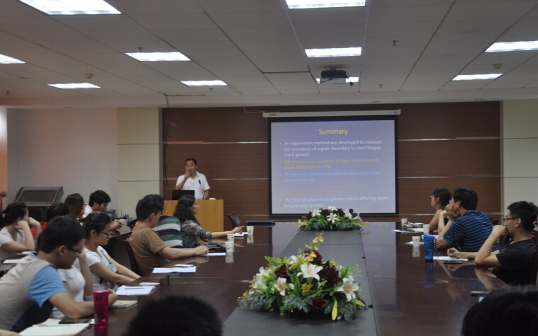 做学术交流。下午3点整在工科楼1006室作了一场题目为“A microstructure-based model for simulation of short fatigue crack growth in 3-D”学术报告。相关专业的老师和研究生参加了报告会。