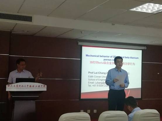 张来昌教授首先对澳大利亚埃迪斯·科文大学及其科研团队的研究方向进行了介绍,着重介绍并分析了3D打印Beta钛合金的特点,以及在航空航天、化工、医学领域的应用。