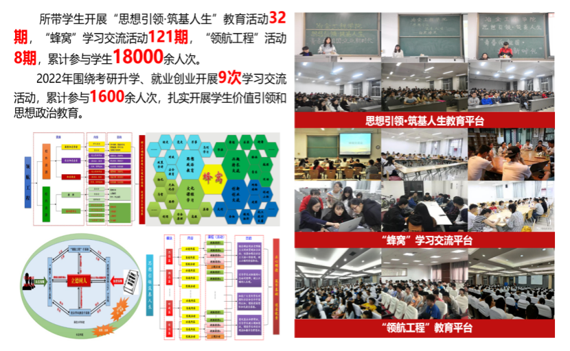 老题新作,常做常新。第二届学生,考研升学、就业创业是华如兵面临的两道老题。面对学生考研热,他探索建立了“‘四关’工作法—考研升学提升计划”。根据学生学业成绩GPA分时分类“一对一”精准科学指导,把好四个重要关口,做大升学“蓄水池”,用好就业“助推器”,2022届考研录取145人,升造率44.5%,增长15.2个百分点,提前完成学院“十四五”规划目标任务,所带的两届学生升学率实现了翻番。