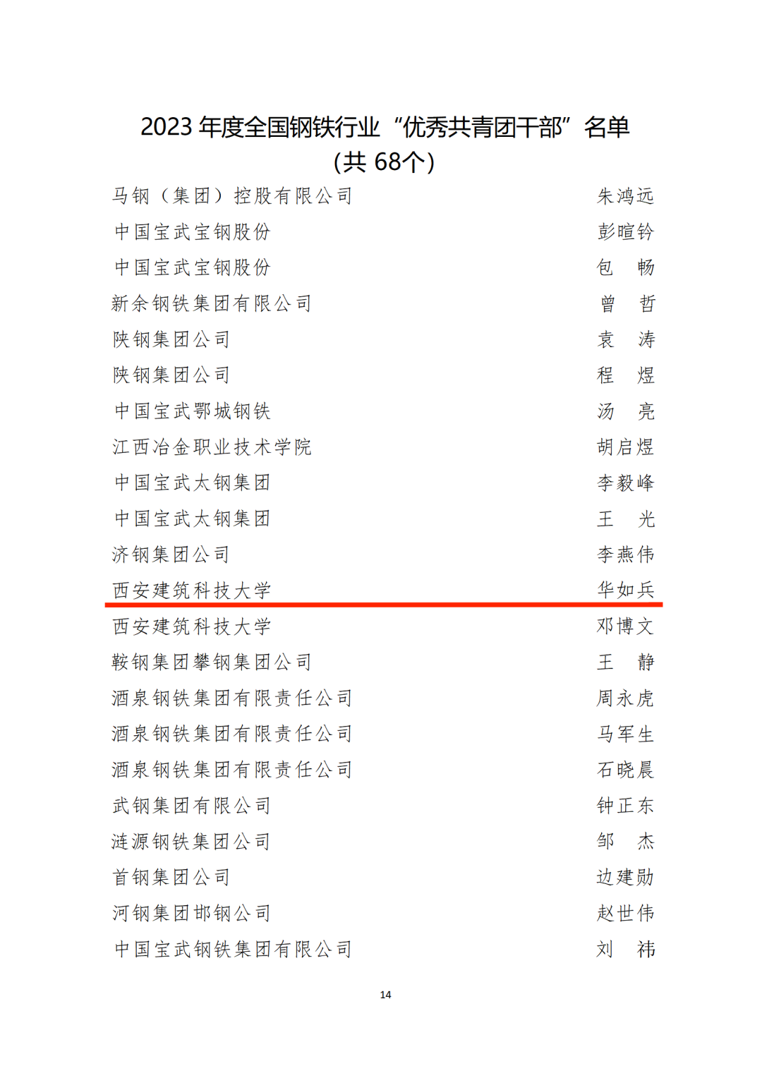 团委书记华如兵老师荣获全国钢铁行业“优秀共青团干部”荣誉称号。