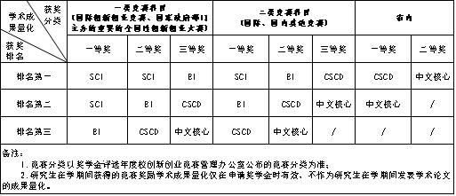 a. 获得国家级科技成果奖励或获得省部级科技成果奖励一等奖的,相当于有1篇学术论文已被SCI(SCIE/SSCI/A&HCI)检索或在SCI(SCIE/SSCI/A&HCI)全文收录期刊源上发表;