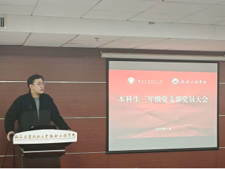 本科生三年级党支部于11月25日召开党员大会。会议由党支部副书记岳家新主持,本科生三年级全体预备党员及入党积极分子参加。