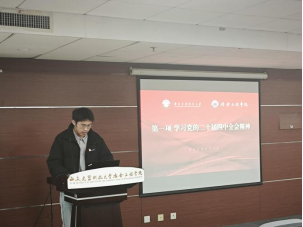 大会伊始,赵佳同志带领全体与会人员认真学习了党的二十届四中全会精神。他围绕会议的重大意义、核心要义和实践要求进行了系统梳理和阐述,引导同学们深刻领会党中央关于推进国家治理体系和治理能力现代化的战略部署。通过本次学习,同学们进一步统一了思想,提高了政治站位,增强了为实现中华民族伟大复兴中国梦而奋斗的责任感和使命感。