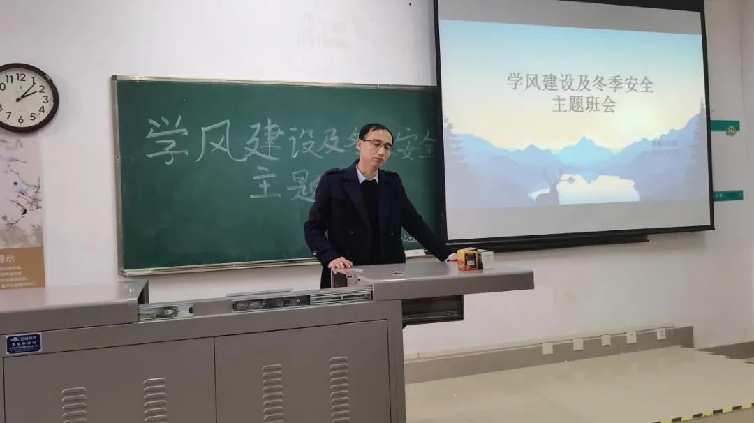 金属2103班班会上,班长龙森林向大家讲述了什么是学风,并对后期班级学风建设提出具体措施。接下来,他强调在期末考试中必须诚信考试,并向大家介绍了教务处之前的作弊案例。最后,班主任杨帆老师为大家讲解了冬季安全,重点介绍宿舍安全中的水电、诈骗和偷盗等方面。