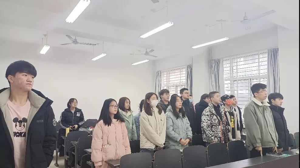 接下来,团支书刘文玉总结了中国共产党带领中国人民创造的辉煌和奇迹,这丰功伟绩的取得离不开中国共产党的正确领导。作为新时代的社会主义青年,更应从思想上积极向党组织靠拢。最后,在团支书刘文玉的带领下,全体同学一起奏唱了共青团团歌——《光荣啊,中国共青团》。