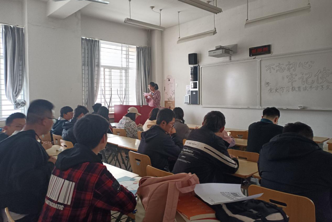 团委组织部于2021年3月16日18:00在学府城16-401教室开展了“蜂窝”学习交流平台——“不忘初心·牢记使命”暨党史学习教育“蜂窝”读书分享交流会,19、20级部分同学参加本次活动。活动由团委组织部郭宇帆同学主持。