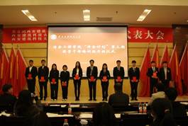 大会伊始,全体起立奏唱中国共产主义青年团团歌。院团委副书记、第二期团学干部培训班班主任华如兵老师宣布第二期团学干部培训班优秀学员及2019-2020学年“青年大学习”优秀团支部名单。