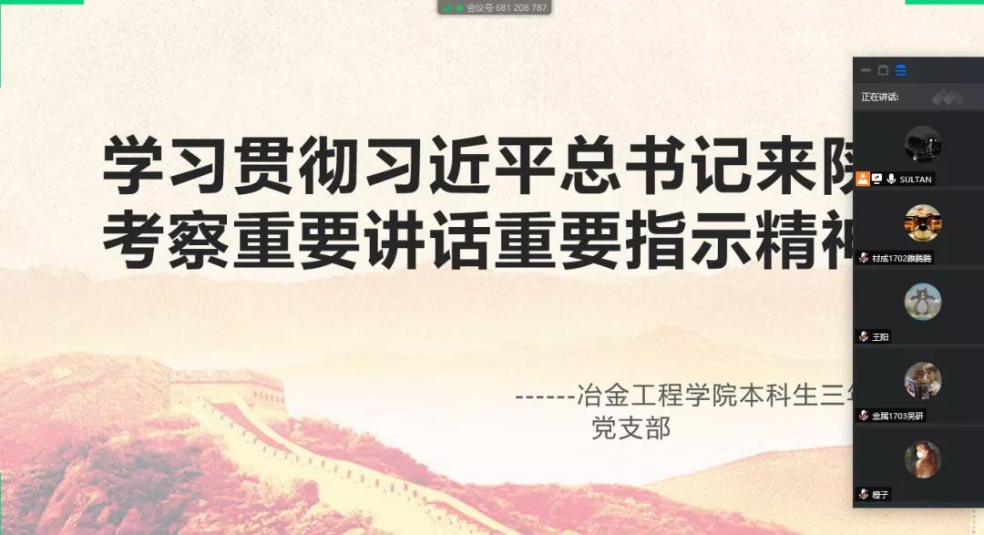 本科生三年级党支部借助腾讯会议平台开展了“学习贯彻习近平总书记来陕考察重要讲话、重要指示精神”专题学习活动。本次活动由本科生三年级党支部张仕威同学主持召开,魔性论坛
