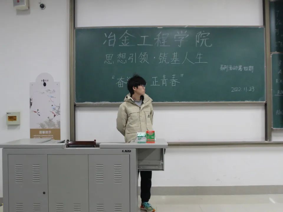 活动开始,主持人通过一则短片让同学们切实感受到了青春的力量,明白了青年一代应与时代共奋进,奋斗才是青春最靓丽的底色。接下来,主持人播放了“现在开讲”访谈节目,程斯宇老师对红军四渡赤水的讲解,让同学们深刻了解了长征史,认识到前行的道路上并非一帆风顺,而是荆棘丛生。在视频中,几位青年代表的故事同样震撼人心。他,边境爬冰卧雪,在寒风凌冽的山顶升起国旗;他,下乡支教,在贫苦恶劣的大山中点燃教育的火种。这些青年代表的故事深深地打动了同学们,让同学们领悟到了“且将新火试新新茶,诗酒趁年华”的内涵,吾辈青年应大步朝前,不畏艰险。