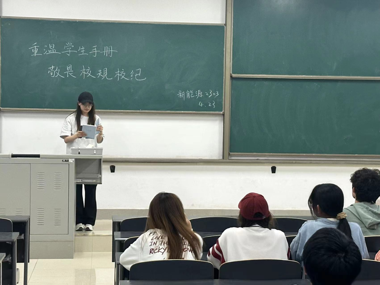 23级各班成功举办了以“遵规守纪促学风”为主题的特色班会。此次活动响应学院“遵规守纪促学风”专题活动。各班学生积极参与,各班班长组织全体学生重温一次学生手册,敬畏每一条校规校纪,强化一次考风考纪教育,开展一次廉洁教育,学习大学生行为规范和《中华人民共和国网络安全法》,解读一次社会公德和社会主义核心价值观,教育引导全体学生遵守校规校纪,受警醒、明底线、知敬畏。