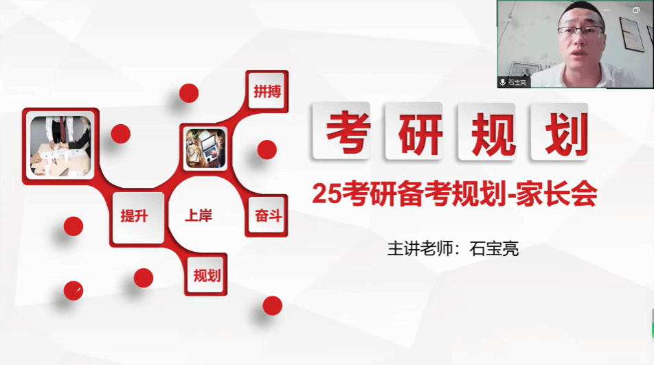 召开2021级本科生线上家长会暨考研就业伴学指导会。此次大会邀请到文都教育石宝亮老师进行主讲,此次会议由院团委副书记、2021级本科生辅导员陈善勇主持。