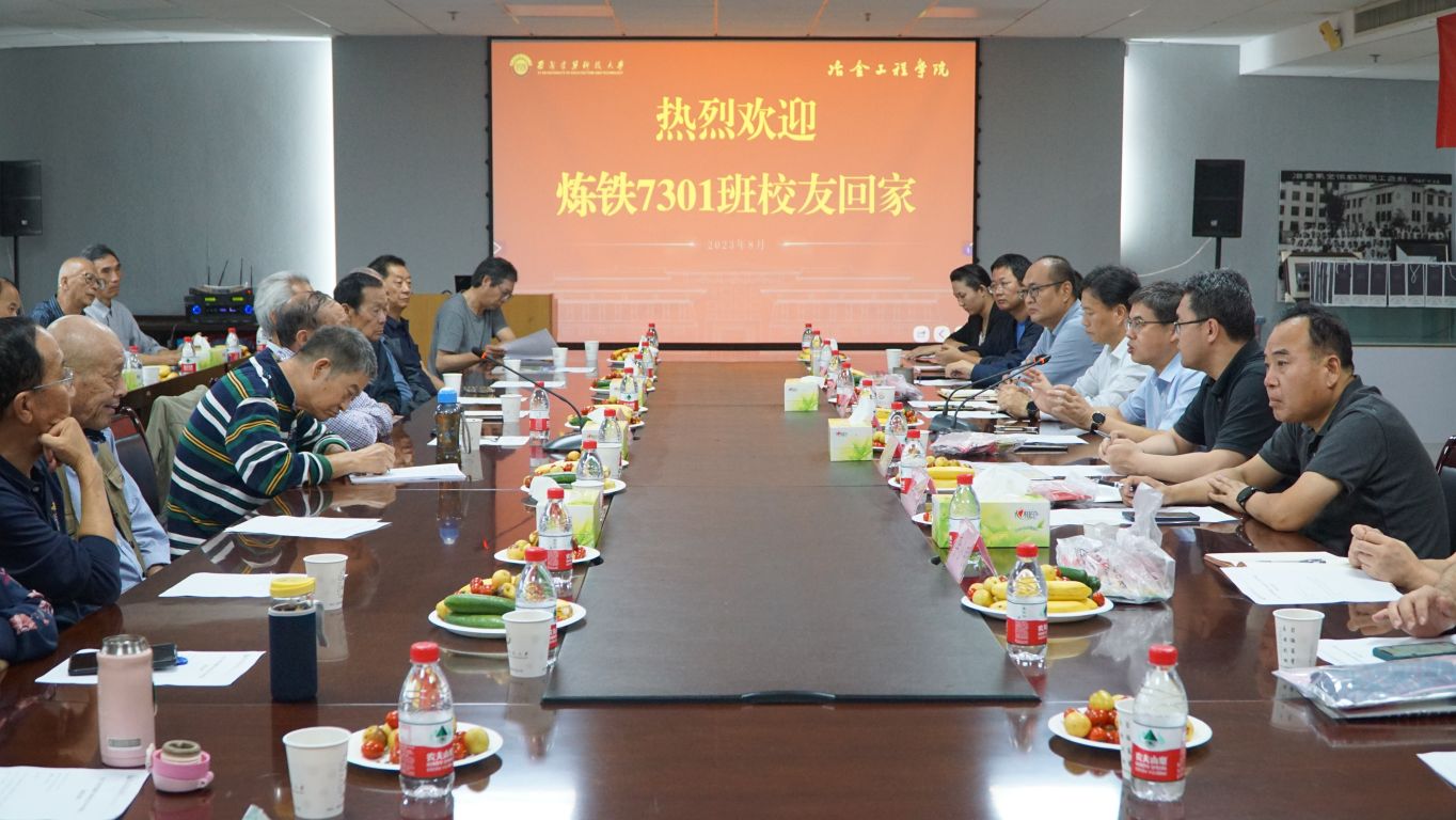 炼铁7301班入学50年返校座谈会在工科大楼1106会议室举行,校党委常委、副校长雷鹏出席座谈会,座谈会由炼铁7301班校友桑宽性主持。